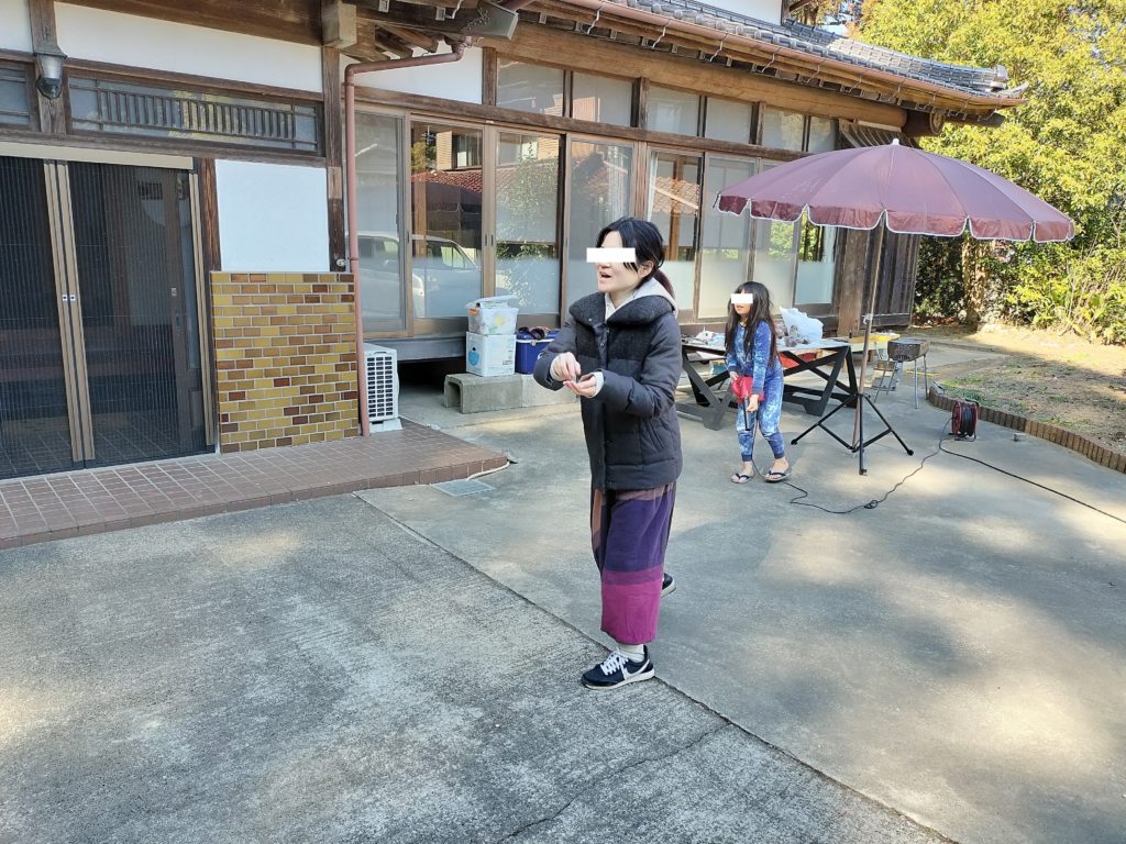 2月3日、駐車場でBBQをした後、豆まきをしました。