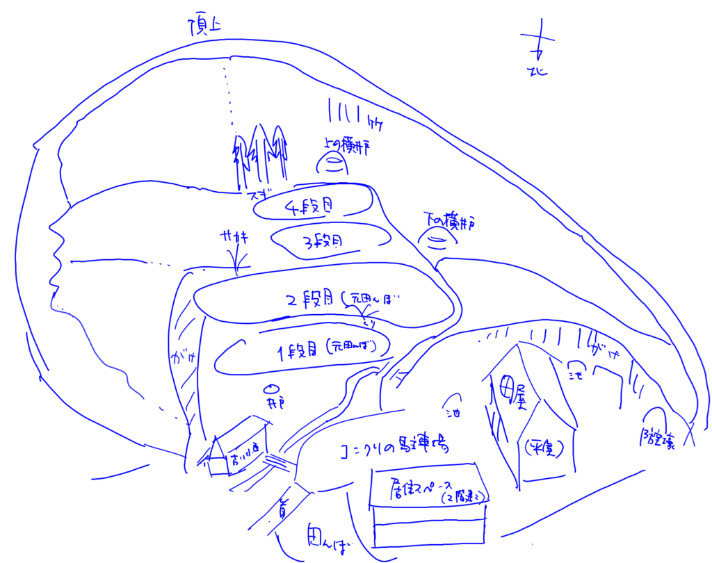 更に、入り口の道の北側には別の田んぼがあり、農地なので購入はできないものの、家主さんは自由に使ってよいとのこと。更にさらに、少し離れたところに畑もあり、こちらもどうぞ、と。